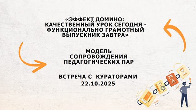 Это явление, при котором одно изменение запускает цепную реакцию похожих событий, тогда одна костяшка домино может уронить следующую, весом больше ее в 1,5 раза. Именно эта идея легла в основу проекта «Эффект домино: качественный урок сегодня – функционально грамотный выпускник завтра». На встрече кураторских пар проекта, которая состоялась 30 октября участниками были определены ключевые задачи работы и главные направления деятельности. Проект будет реализовываться с ноября 2025 по март 2026 года.